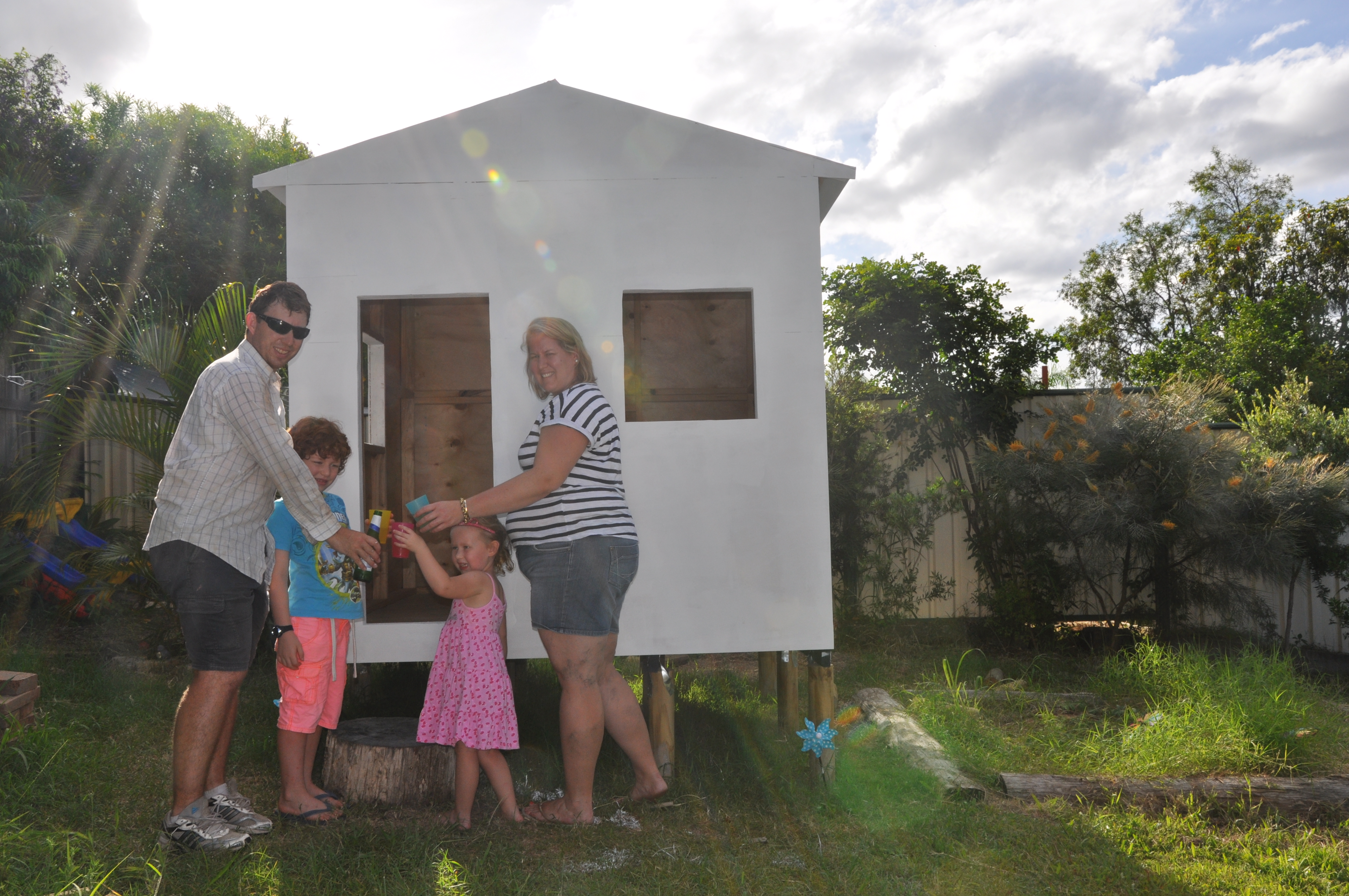 The Cubby House isn’t 100% complete, but it is close enough, and time to let the kids to be able to play in it. Still need to complete doors, windows, trims, and second coat of paint.